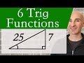 Learn how to evaluate the six trigonometric functions given a right triangle. Trigonometric functions of any angle.
